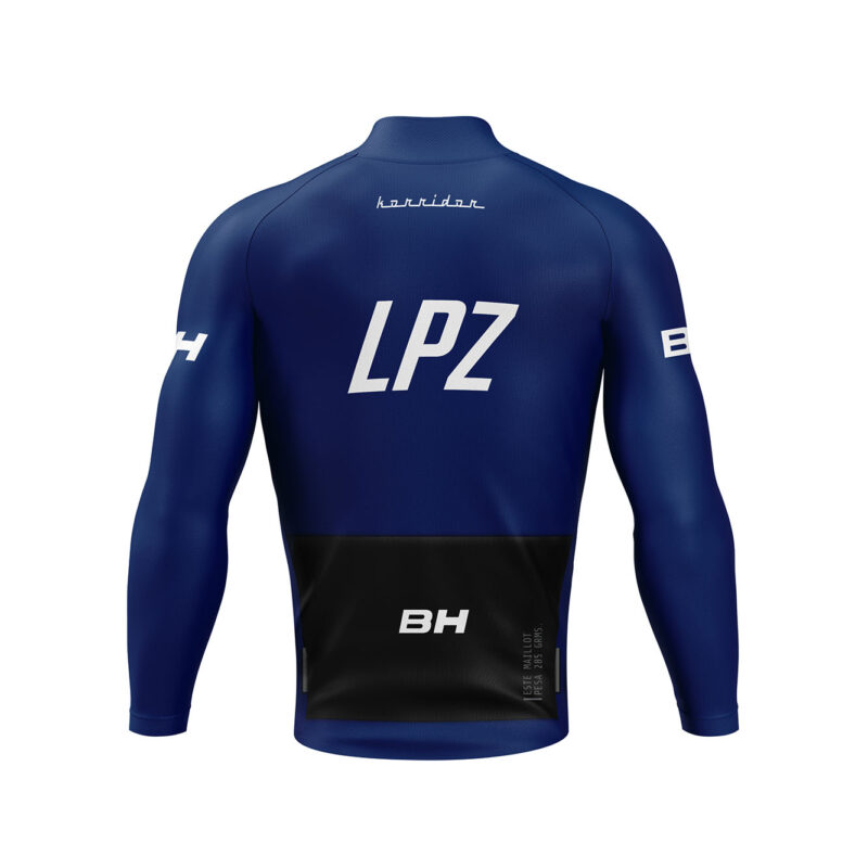 Maillot LPZ BH en color Ocean Blue, diseñado en colaboración con José María López. De estilo minimalista y elegante, este maillot será tu aliado perfecto durante esas salidas en las que el frío empieza a hacerse notar. Y, como no podía ser de otro modo, el detalle de la inscripción del peso del maillot en el bolsillo trasero, porque igual que José María, nos encanta tomarnos la vida con humor.